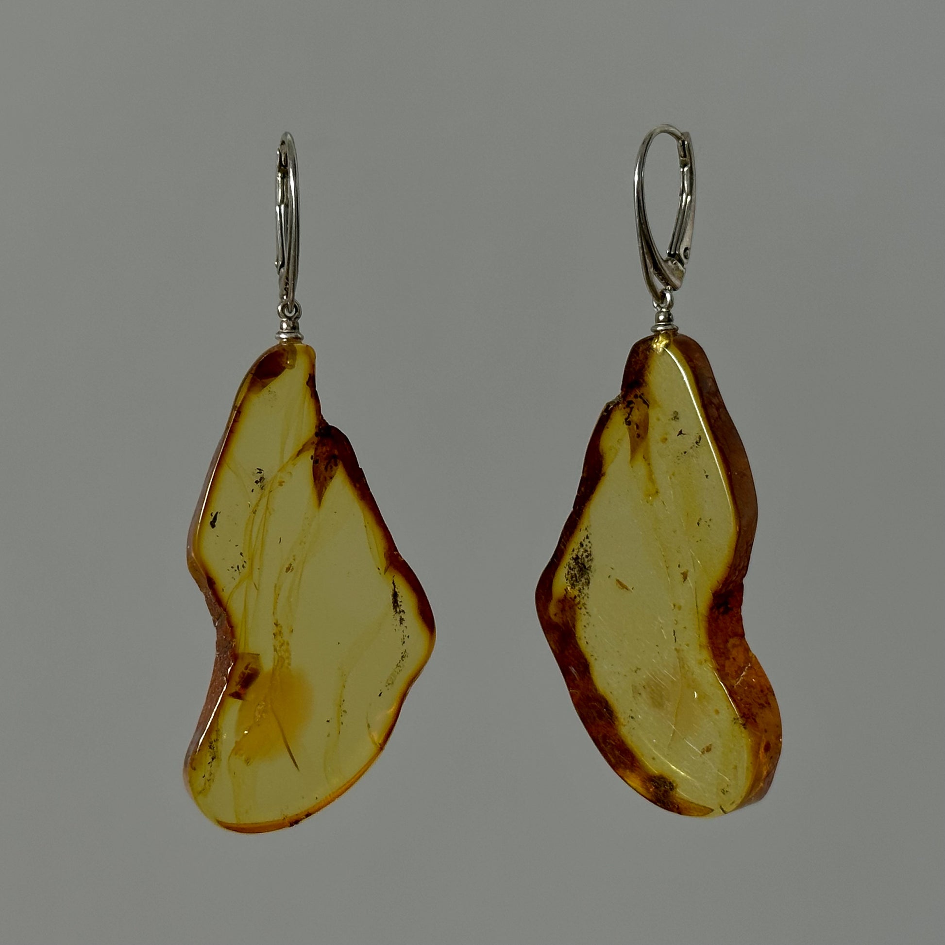 These stunning amber earrings combine warm shades of yellow and brown, capturing the essence of honey with their unique, organic shape. Each piece radiates a natural elegance, perfect for adding a touch of sweetness and sophistication to any look.
