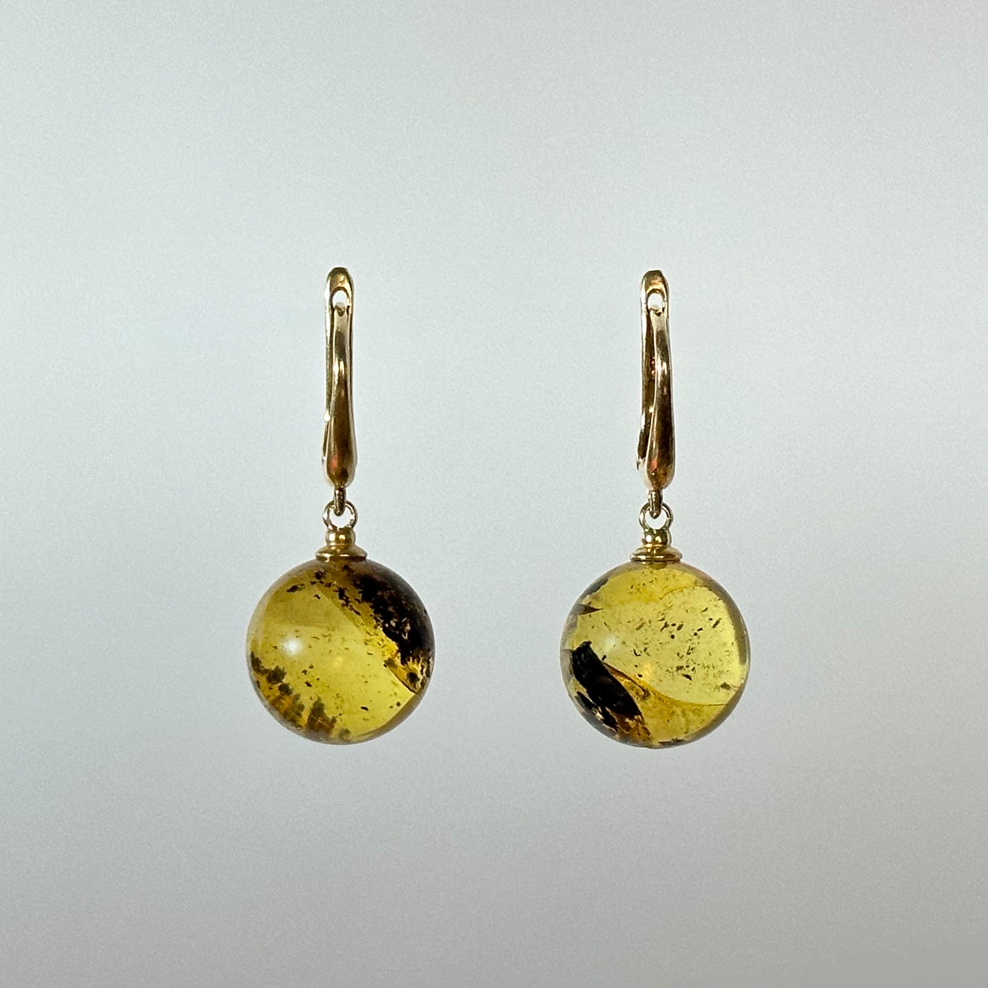 These classic round amber earrings are designed to effortlessly enhance your look, making your eyes stand out while delicately enriching your face. Their simple, yet elegant shape adds a refined touch, perfect for any occasion.