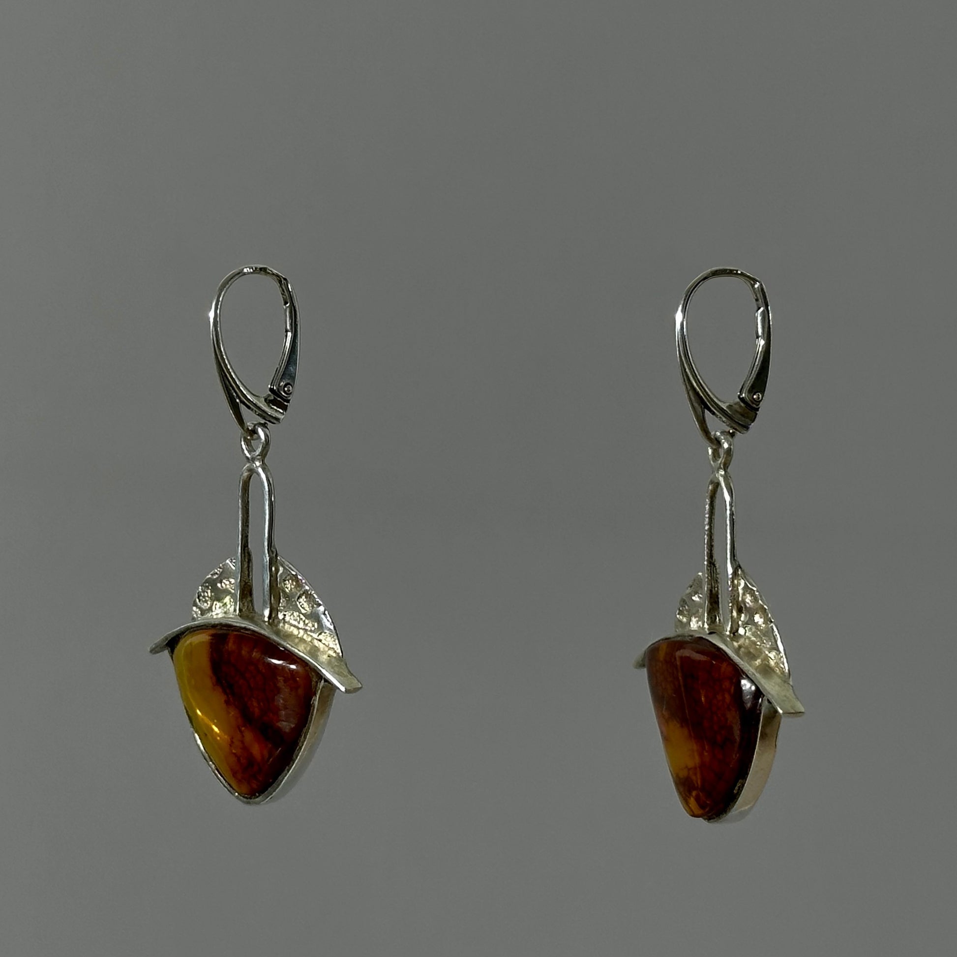 These captivating amber earrings, with their unique shape, exude an aura of ancient goddess power. The rich brown hues evoke a sense of mysticism and timeless strength, making them a striking accessory that embodies both grace and divine energy.