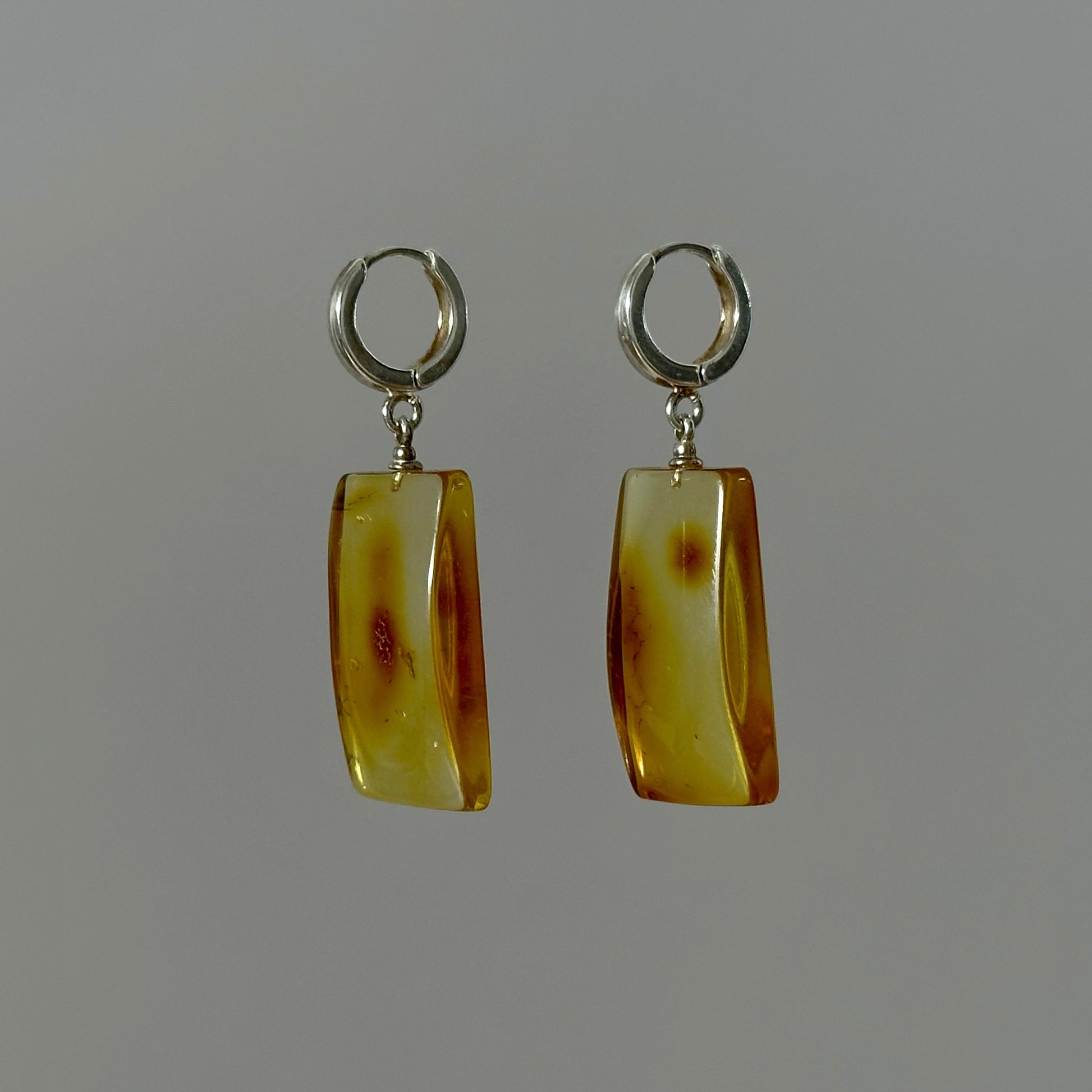 These elegant yellow amber earrings evoke the soft, serene beauty of a pastel painting, with subtle color transitions and a delicate, timeless design. Their simplicity and light, dreamy hues bring a touch of refined charm to any ensemble.