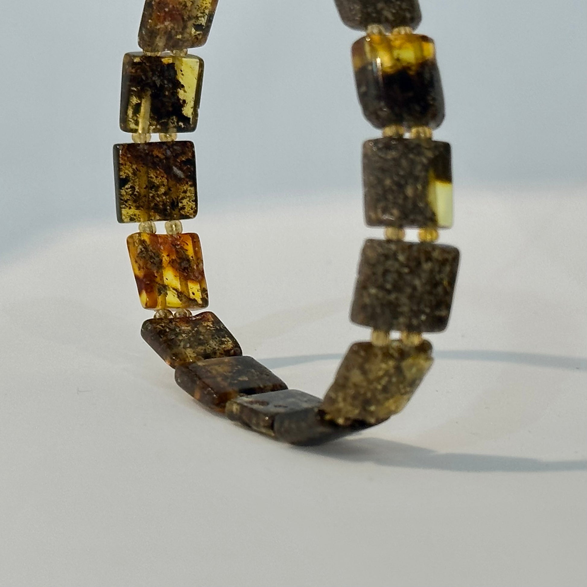 The Green Amber Tennis Bracelet features a stunning line of smooth, green amber stones, each carefully cut to create a sleek, uniform design. Known for its calming, earthy hues, the green amber adds a natural, yet refined touch to this minimalistic bracelet. Its delicate structure and timeless elegance make it a perfect accessory for both casual and formal occasions. Whether worn alone or stacked, this bracelet brings a subtle pop of color and sophistication to any ensemble.