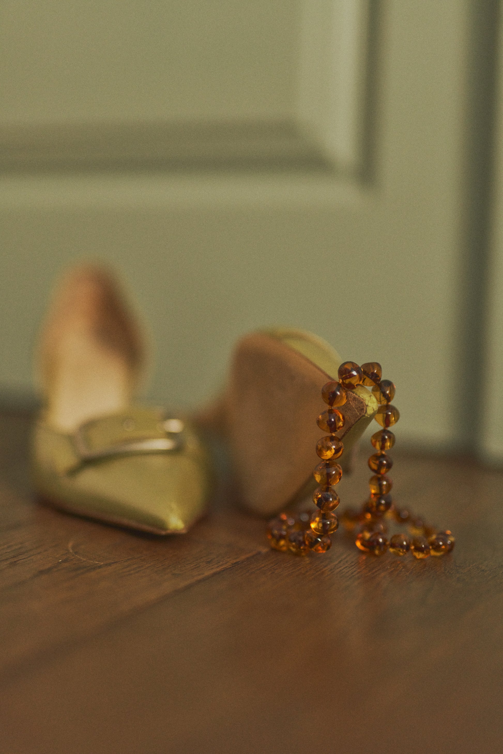 This near-neck round cognac amber necklace has a youthful and fresh vibe, enhanced by its transparent, light-catching appearance. With its simple yet elegant design, it’s a versatile piece that adds a subtle touch of warmth and natural beauty to any look. Perfect for those who appreciate minimalist style with a fresh, contemporary twist.