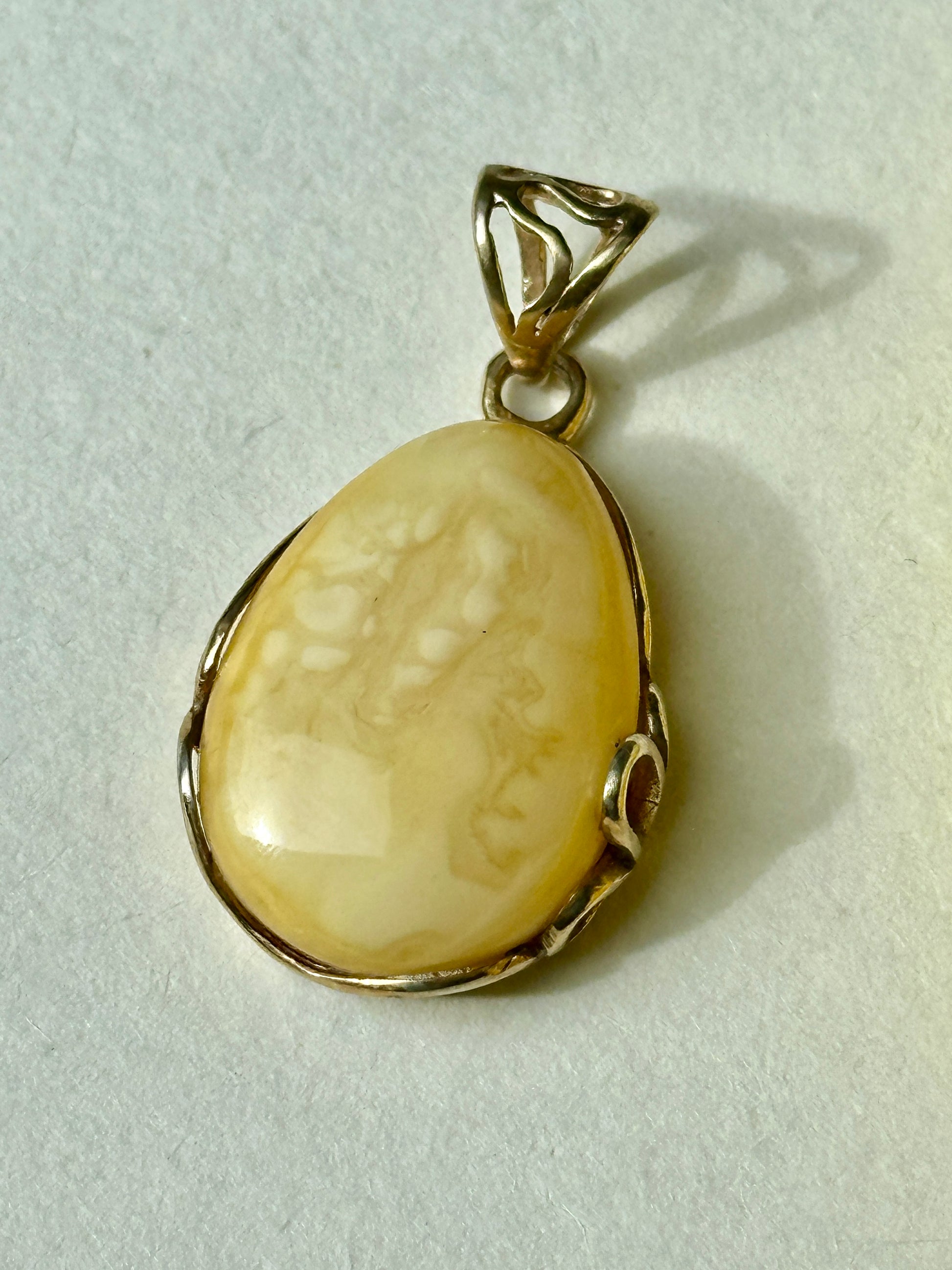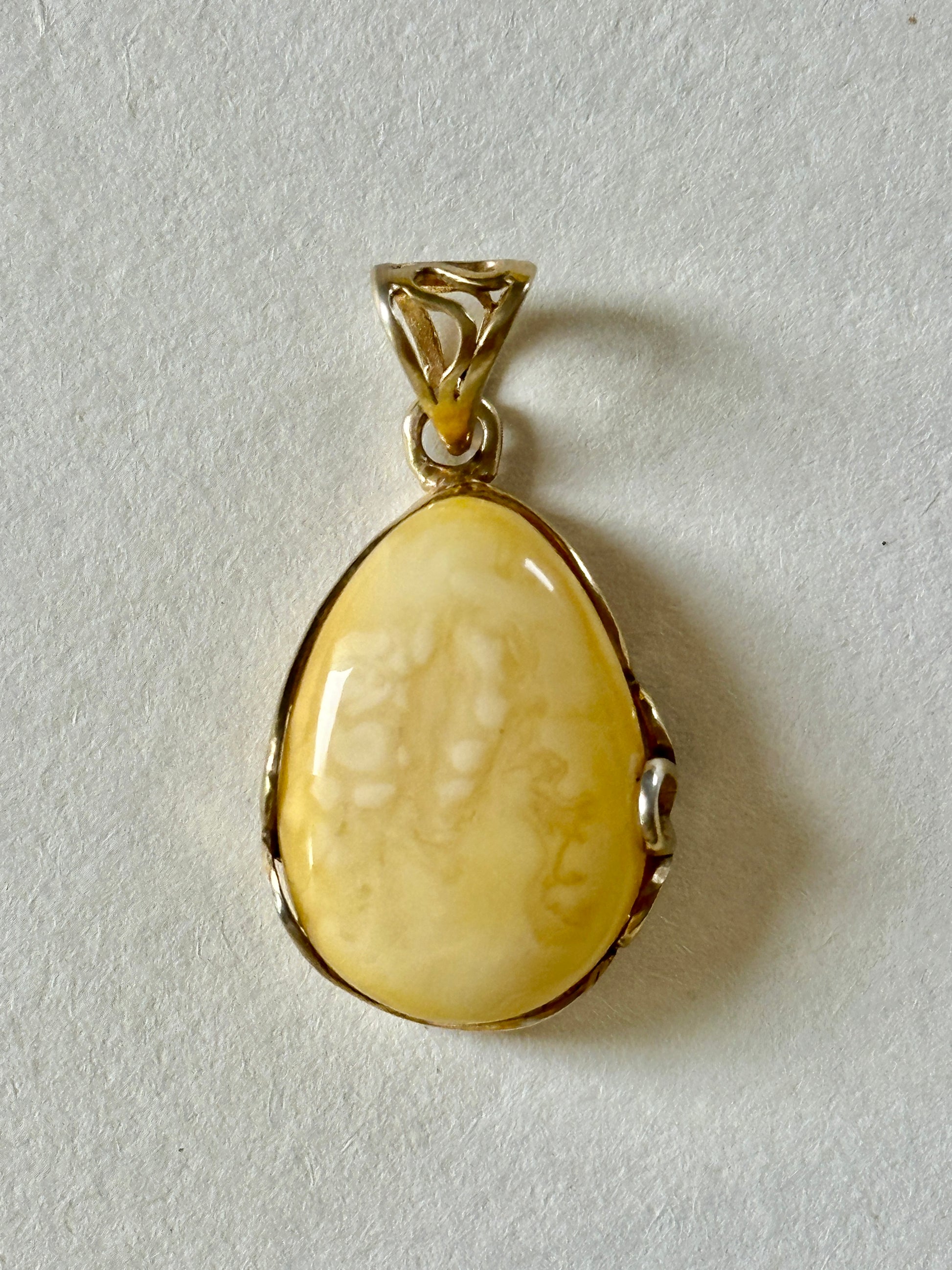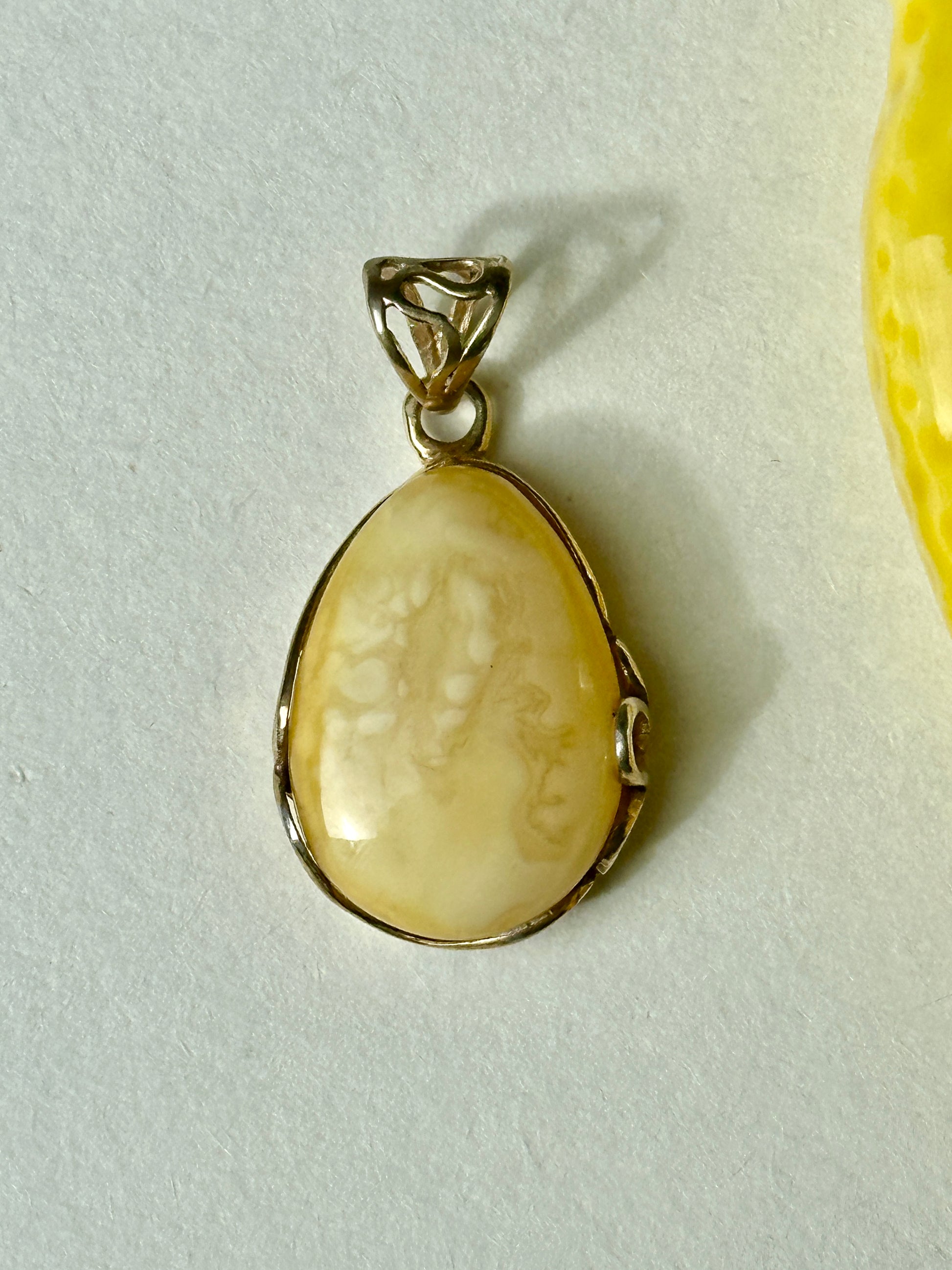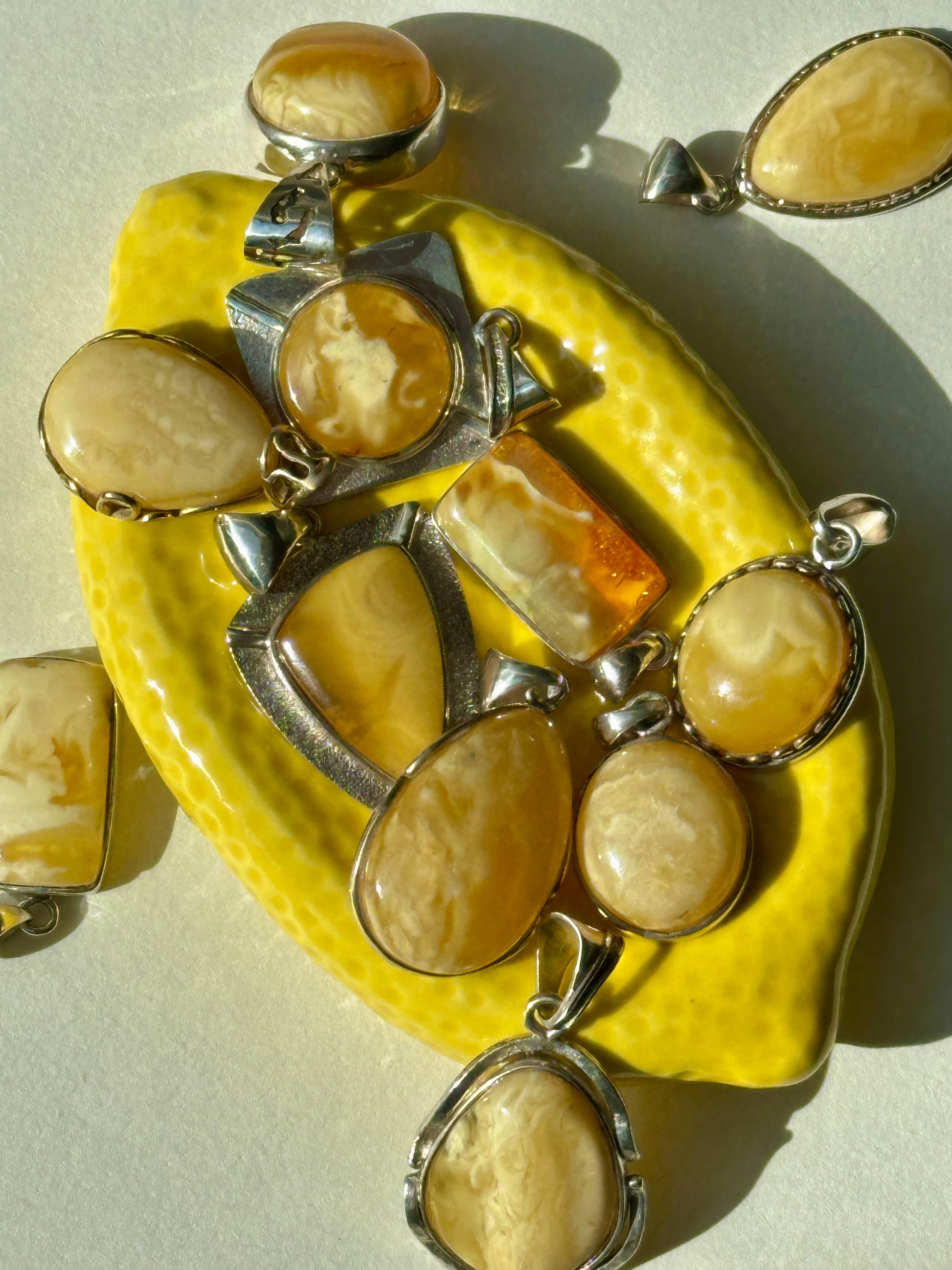 Warm butter yellow – one of 2025’s top colors – meets timeless elegance in this one-of-a-kind amber pendant with sterling silver accents. A unique, classic piece from the Limone collection, inspired by Italian sunsets, seaside homes, and lemon gelato. Each pendant is one of a kind – no two are the same.