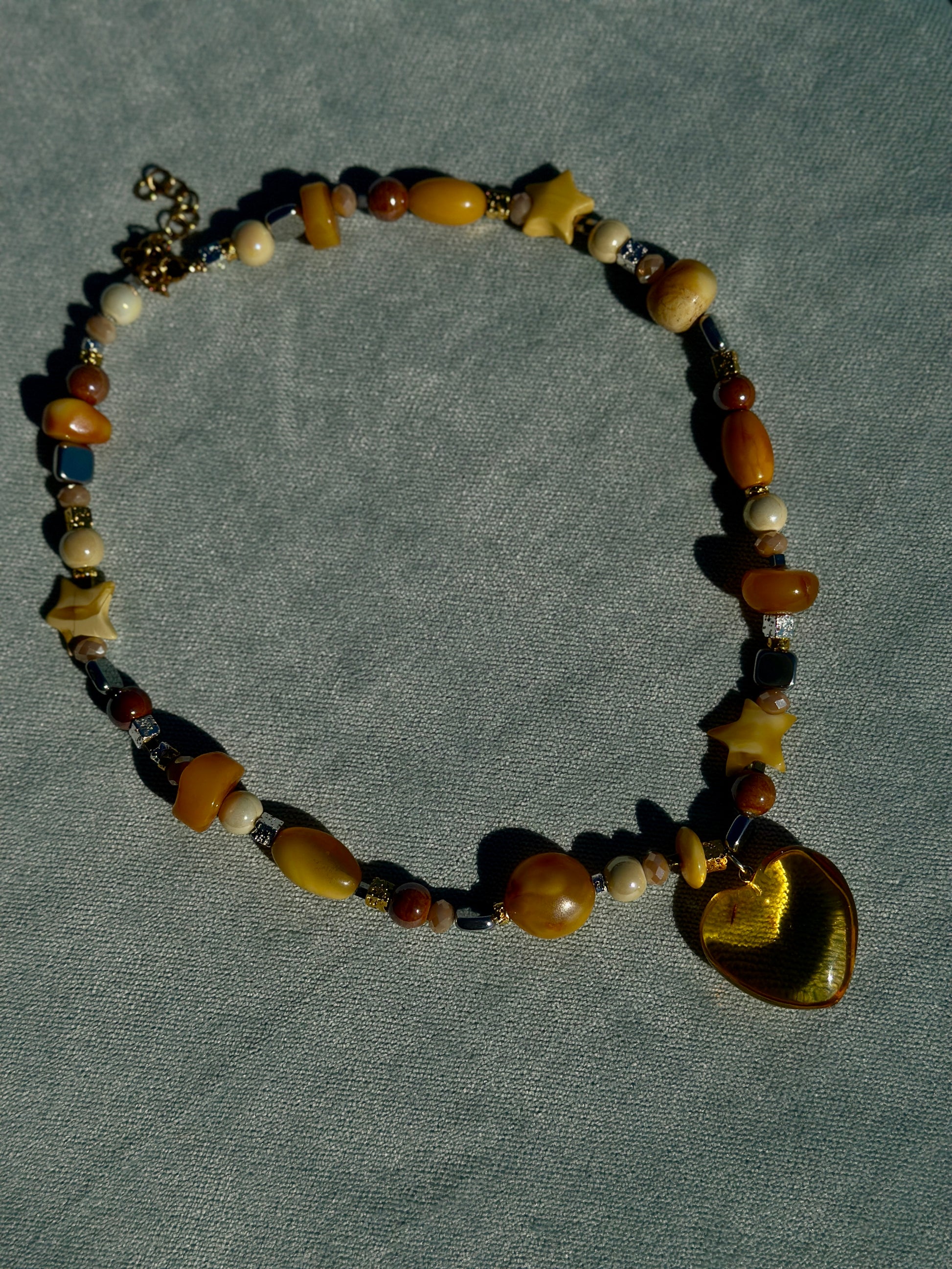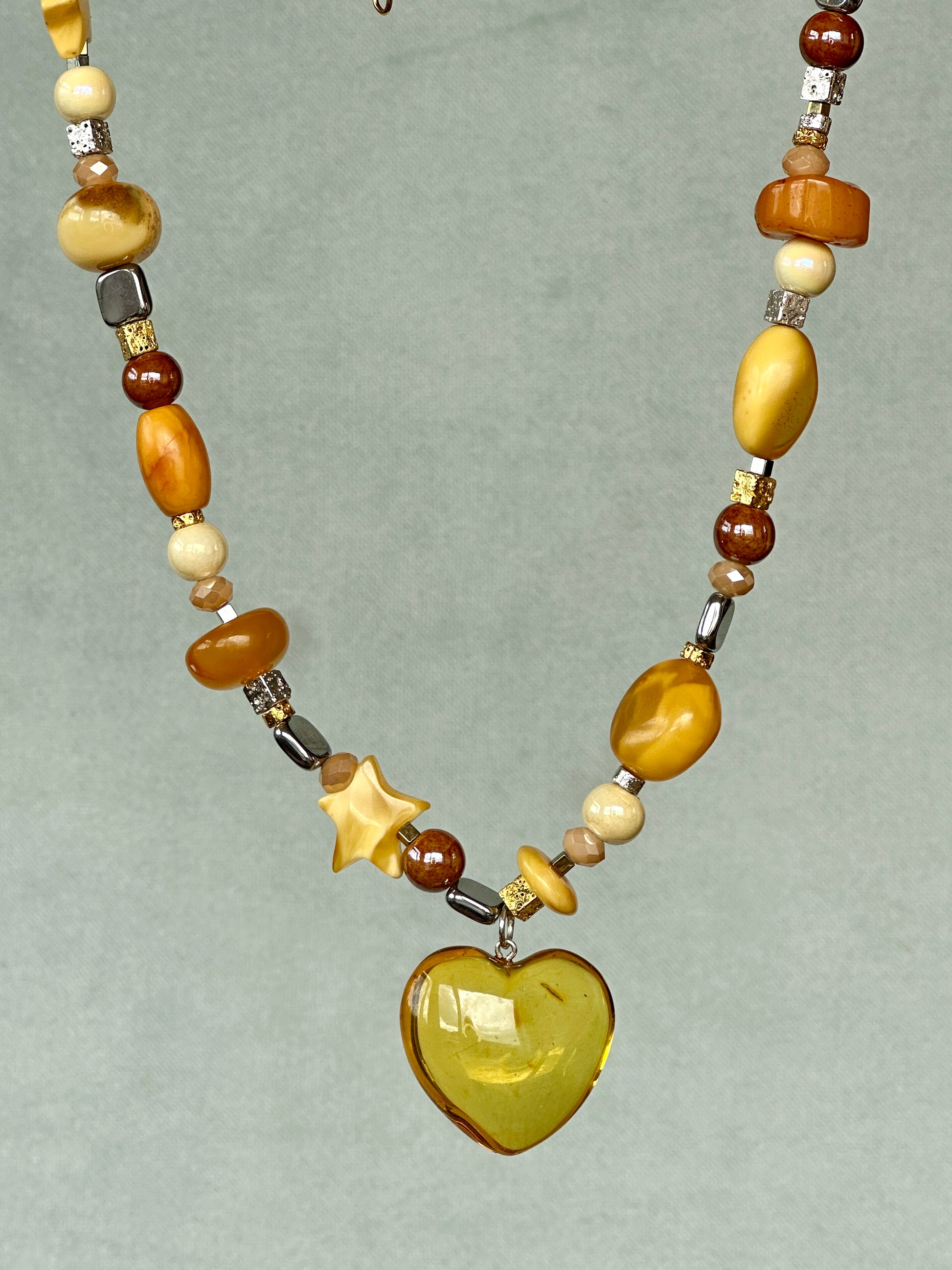 This necklace is a playful and youthfully fresh reinterpretation of amber. Combining the natural warmth of amber with unexpected shapes and an expressive design, it boldly reimagines tradition. Each bead is unique due to the natural characteristics of amber, making this necklace truly one-of-a-kind. It’s a bright and lightweight accessory for those who love to stand out, shine, and embrace their individuality.