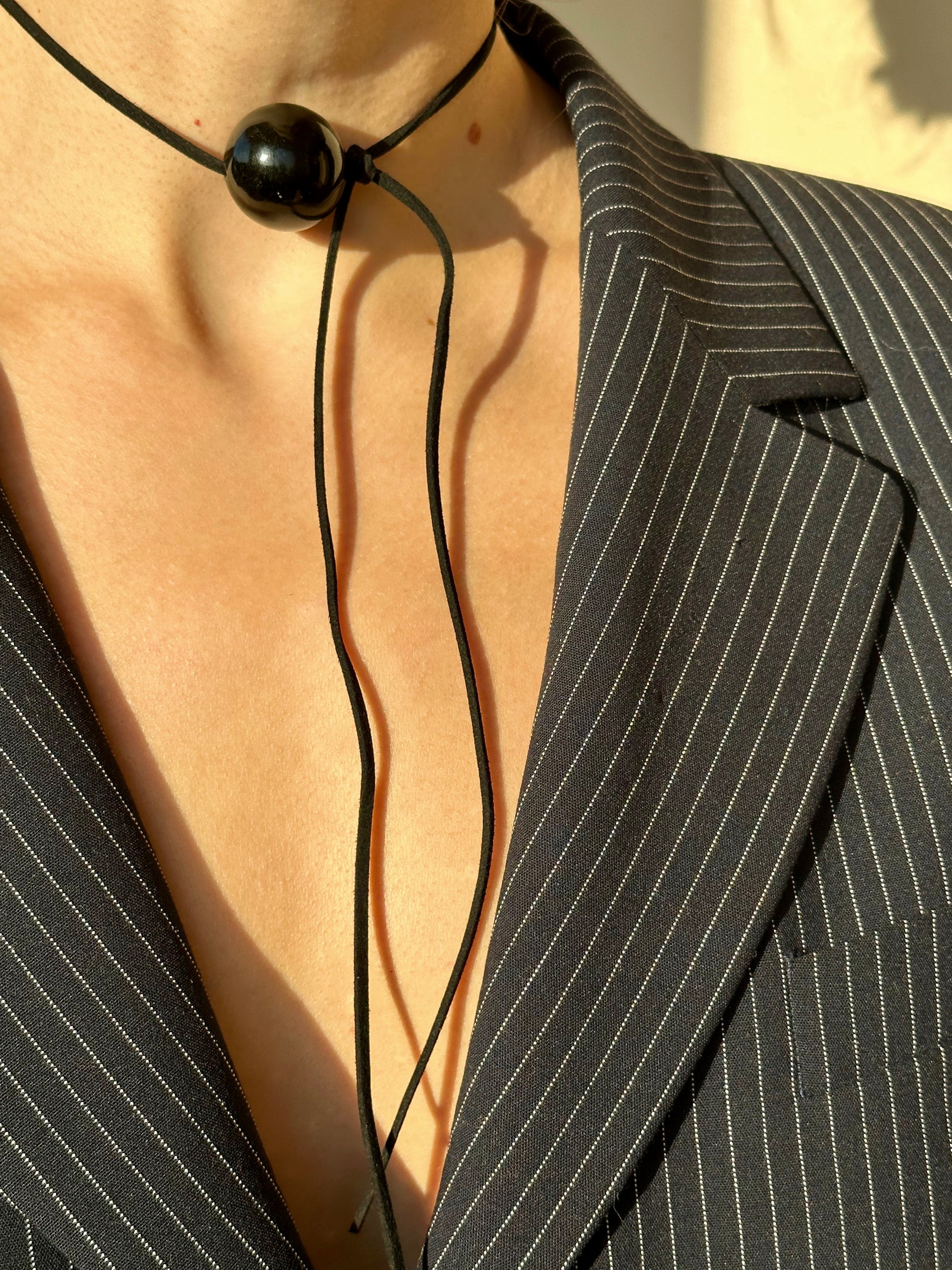 This unique round amber pendant is strung on a leather cord, offering endless styling possibilities. It can be tied into a bow, worn as a long pendant, styled as a choker, or even transformed into a bracelet—however your imagination inspires. Available in two stunning shades—soft light brown and rich cognac amber—it’s a creative and adaptable accessory that celebrates individuality and elegance.