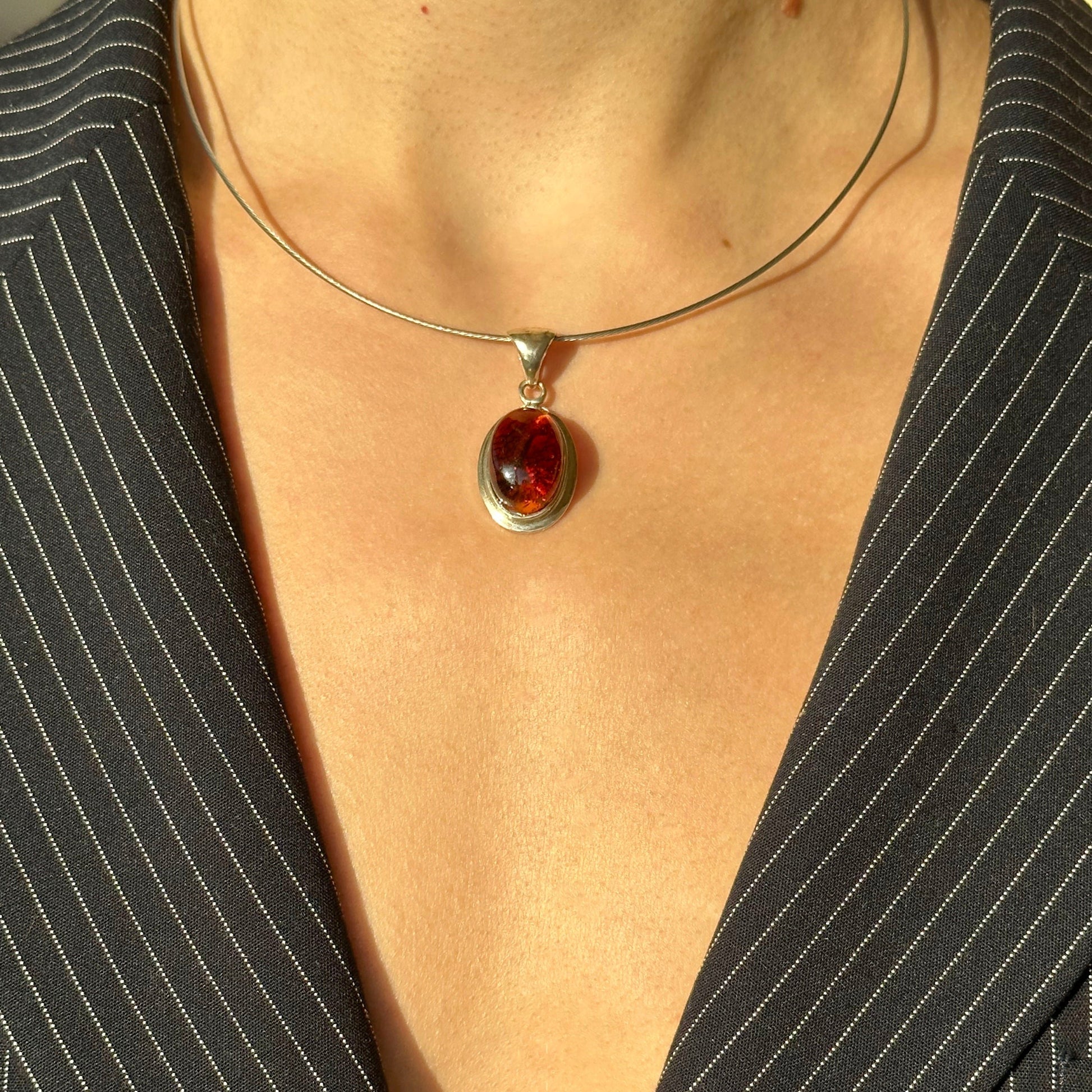 This oval medallion-shaped amber pendant is a subtle and timeless piece, exuding quiet elegance. With its refined design, it holds the essence of Lithuanian amber close to the heart, making it a perfect symbol of heritage and natural beauty. A sophisticated, enduring accessory that transcends trends and speaks to those who appreciate lasting craftsmanship.