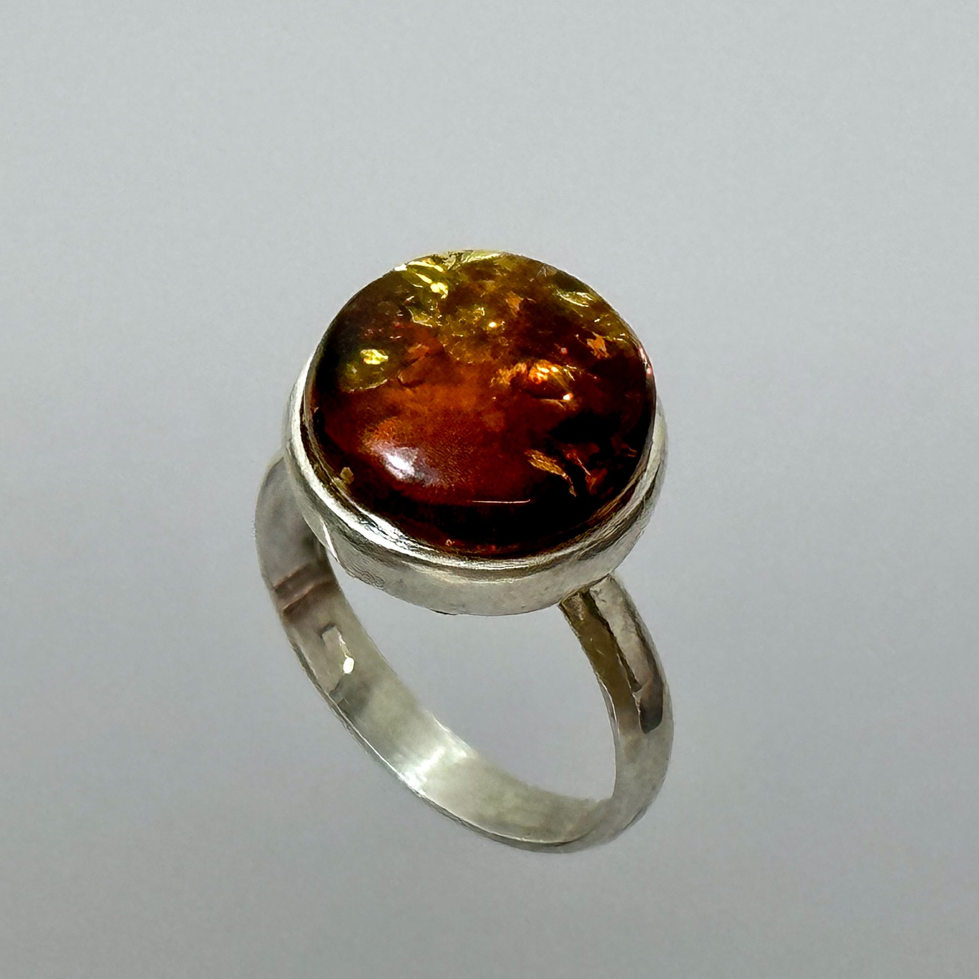 This round-shaped brown amber ring captures a captivating, shattered glass effect, blending modern intrigue with timeless charm. Its unique design and warm amber tones make it a standout piece, radiating an effortlessly enchanting vibe. Perfect for adding a touch of bold elegance to any look.