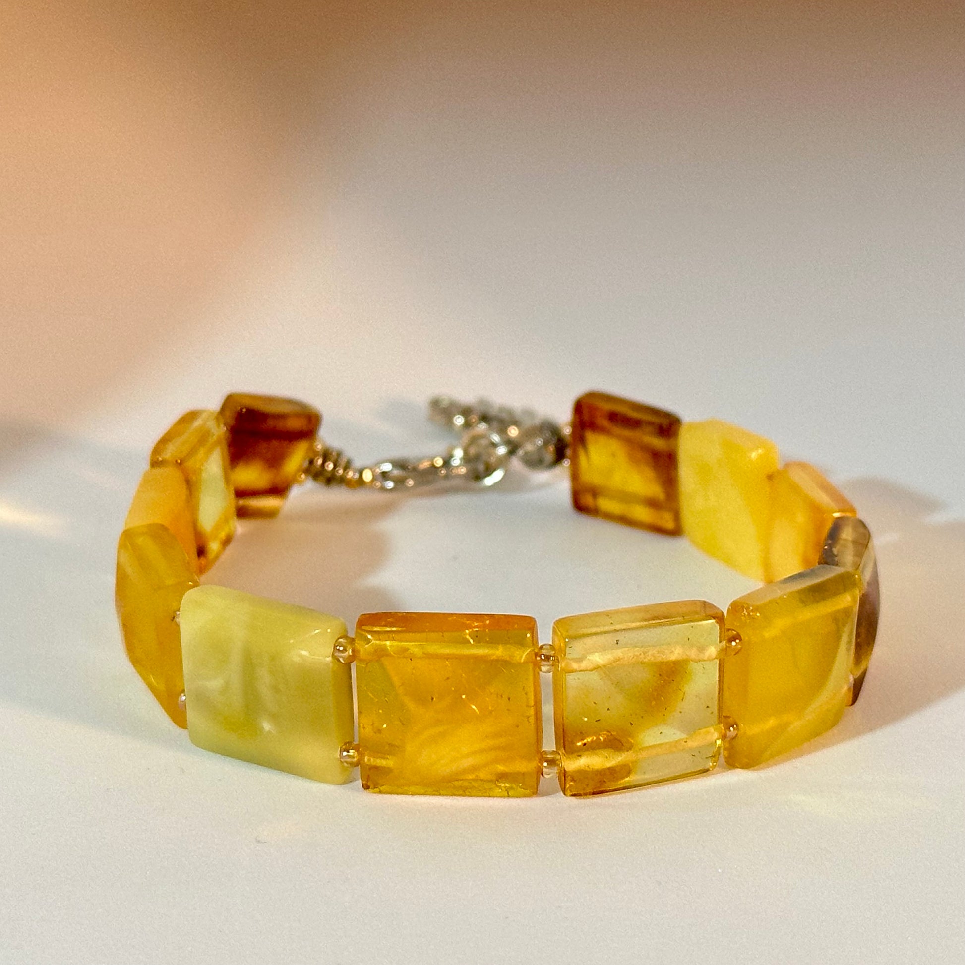 The Yellow Amber Elephant Tennis Bracelet showcases a stunning row of warm yellow amber stones in a classic tennis bracelet design. A charming elephant detail at the clasp symbolizes wisdom, strength, and good fortune, adding a meaningful touch to this elegant piece. Perfect as a gift or a personal token, this bracelet combines timeless style with a message of positivity and resilience, making it a truly special accessory.